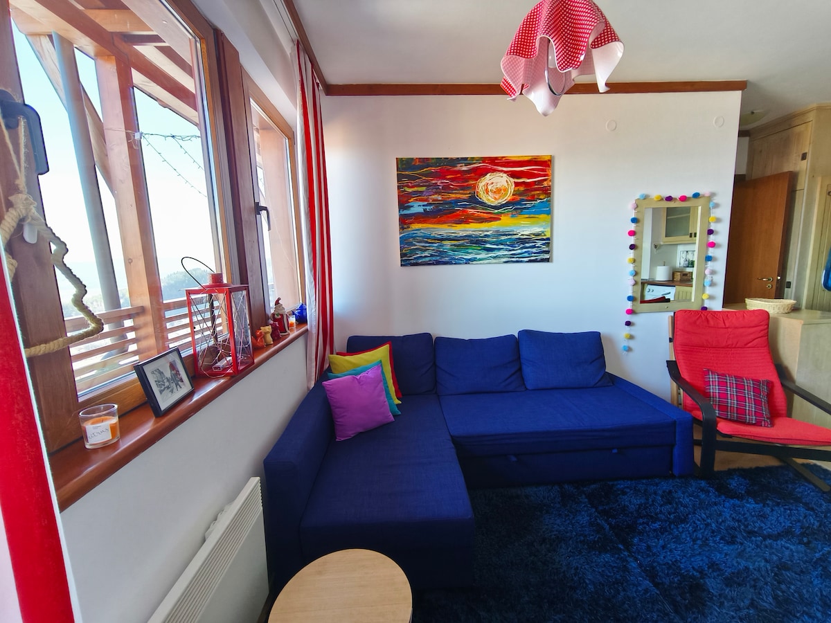 Luxury apartment, situated in the heart of Bansko- on the Main Street, just next to the main ski lift. The apartment is 70m2 and offers the perfect vacation for a family/group of friends up to 4. The apartment: - A big open space living room with fully equipped kitchen, dining table, comfortable and large sofa (full bed option), TV, high speed internet, very nice view of the city and mountains. - Spacious bedroom , with comfortable bed, large wardrobe and TV. - Modern and large bathroom.