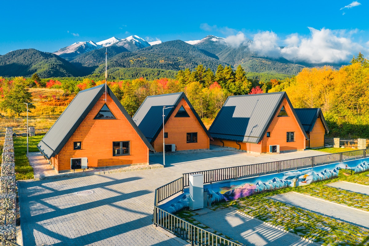 Dear guests, let me introduce you a wonderful Alpine style house.The house is located in the best location of the complex and in the best mountain complex in Bulgaria "Pirin Golf Resort" near Bansko. Wood and stone, huge windows with a lot of light, a burning fireplace, a noisy company or a quiet romantic weekend - everything is for you. Incredible views of mountain peaks that look right at you wherever you are - on the terrace or in the bedroom. Fresh air and you are inside nature itself!