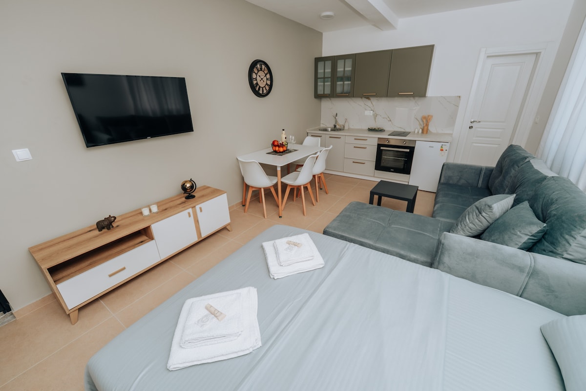 Guests will find a stovetop, a refrigerator, kitchenware and an electric kettle in the kitchen. The studio also has a barbecue. This air-conditioned studio includes a flat-screen TV with cable channels, a private bathroom as well as a balcony with sea views. The unit offers 1 bed.