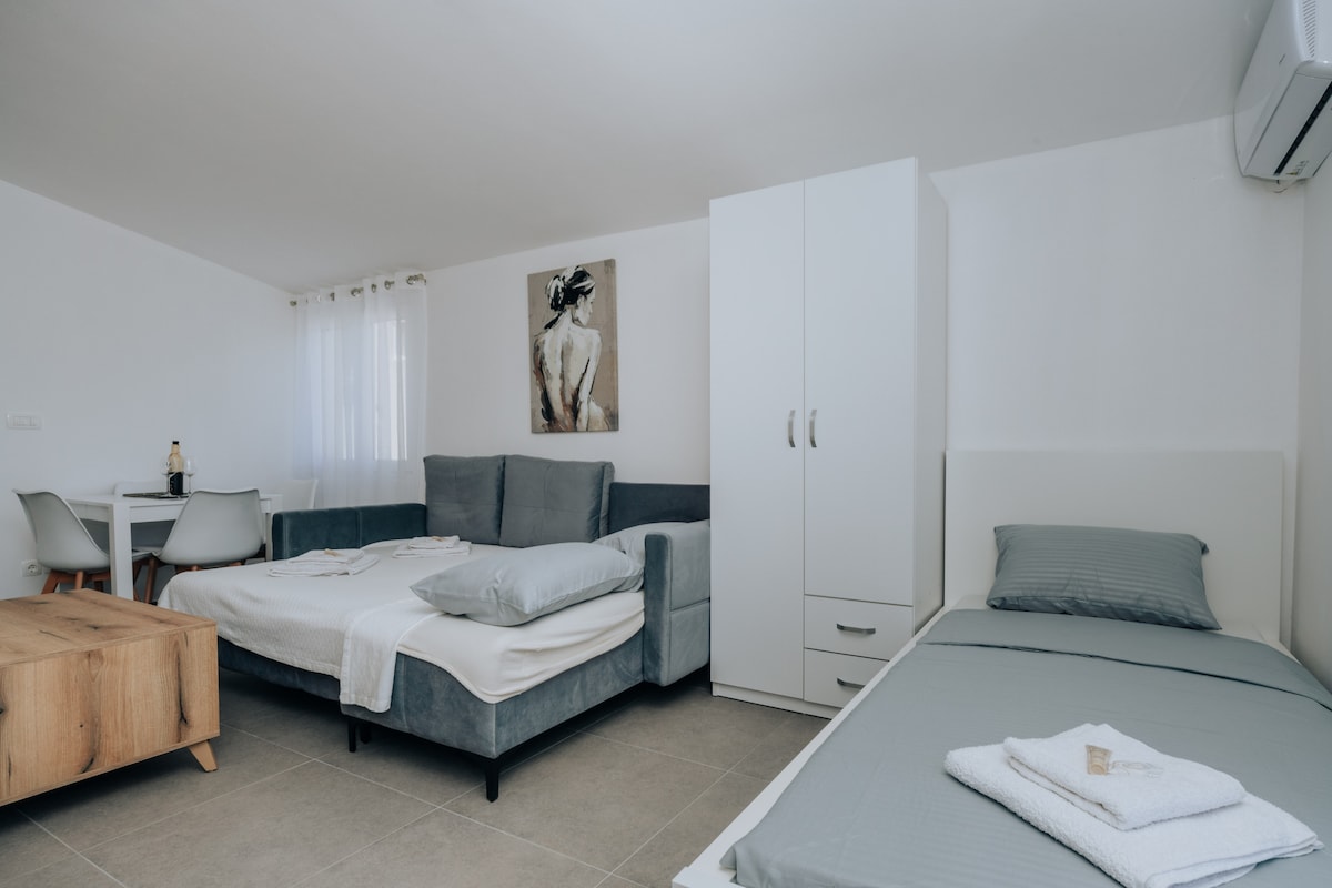 Спокойное жилье для расслабленного семейного отдыха, в дали от шумов клубов и ресторанов Сутоморе. В 15 минутах ходьбы до моря - 3 пляжа городской, Малевик и Штербине. В апартаментах есть все необходимое для комфортного отдыха собственная кухня со всем необходимым, ванная комната, во дворе зона барбекю с обеденной зоной. Доступная парковка.