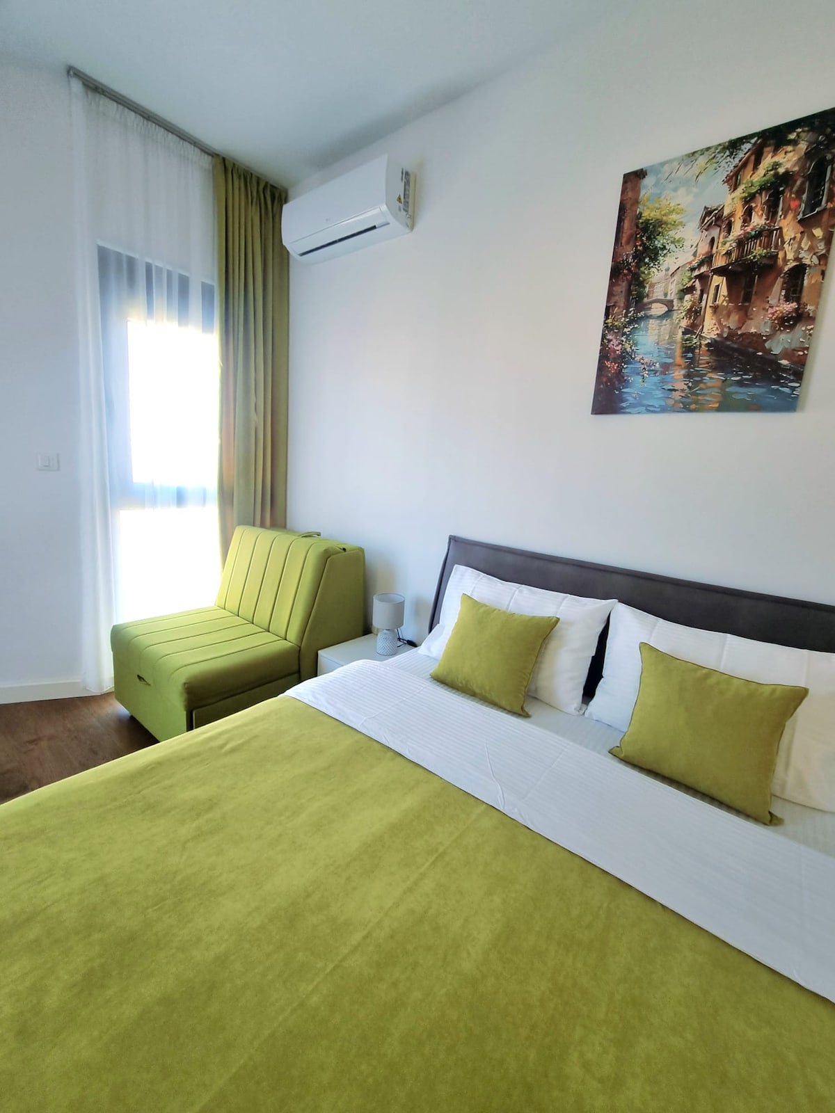 You will have a pleasant stay in this modern and newly decorated apartment, located in Bar, Susanj, with only 900 meters to the first beach , with sea views and terraces. This modern apartment with air conditioning, free WIFI has also a free parking spot. What makes this apartments special is Private Sauna and Jacuzzi-(on the Terasse)with a perfect sea view On the big terasse with modern furniture, so you can enjoy making your favorite dishes with friends or family Breakfast is available for €9