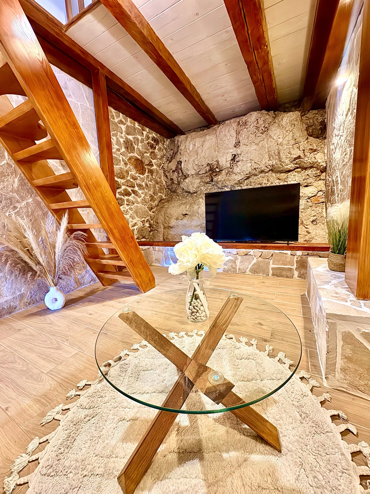 Unser liebevoll gestaltetes Tinyhouse bietet Platz für 2 Personen. Es liegt ruhig auf einem weitläufigen Grundstück mit Panoramablick! Genießt die private Terrasse mit Loungeset, eine gut ausgestattete Küche (Induktionskochfeld, Kühlschrank, Toaster, Wasserkocher), ein modernes Duschbad sowie einen offenen Wohnbereich mit Schlafgalerie (großes Bett). Zur gemeinsamen Nutzung mit unseren anderen Gästen steht euch ein Infinitypool zur Verfügung – perfekt für eine entspannte Auszeit in der Natur.