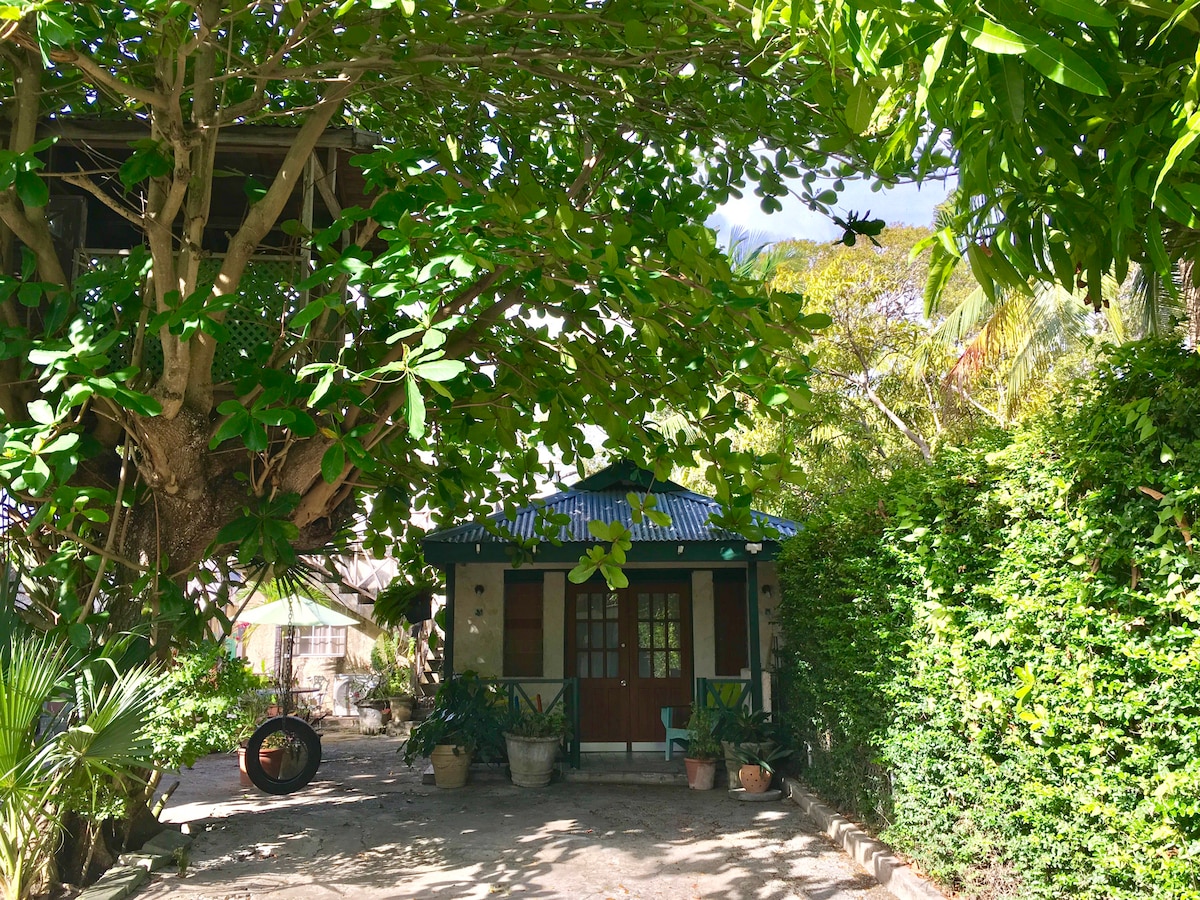 Newly renovated 1 bedroom cottage conveniently located in Dover a stone throw away from the Sandals resort and the popular Dover Beach. All the accommodations are new, and the décor is modern and tropical. There is parking available and there is a large covered gallery with a kitchen and large garden with a mango tree, coconut tree and lots of tropical flowers. You are just a stroll from several bars, restaurants, groceries and bus route.