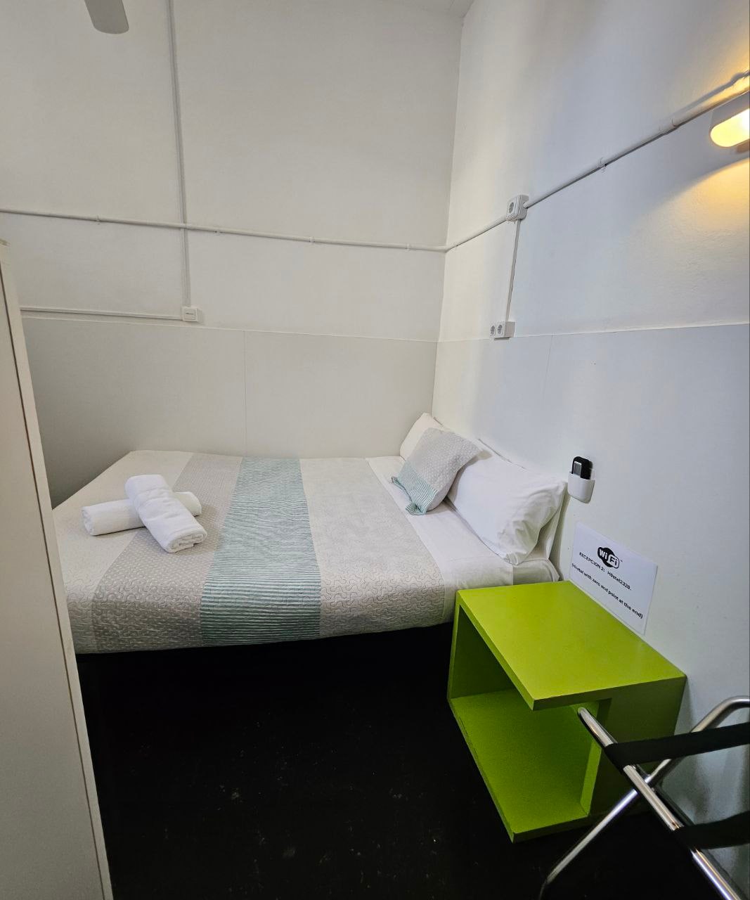 Nuestro nuevo Guest House de Gran vía cuenta con una cocina totalmente equipada(sin horno) y nevera para nuestros huéspedes. Habitación individual baño privado y terraza privada. Tv, aire acondicionado. Ocupación máxima: 1 Tipo de cama: 1 doble 1,35 Aire acondicionado frio/Calor Servicio de limpieza diaria de Habitaciones Secador de pelo Caja de seguridad en la habitación. Televisión Pantalla plana Plancha/tabla de planchar(Bajo petición) Wifi gratuito