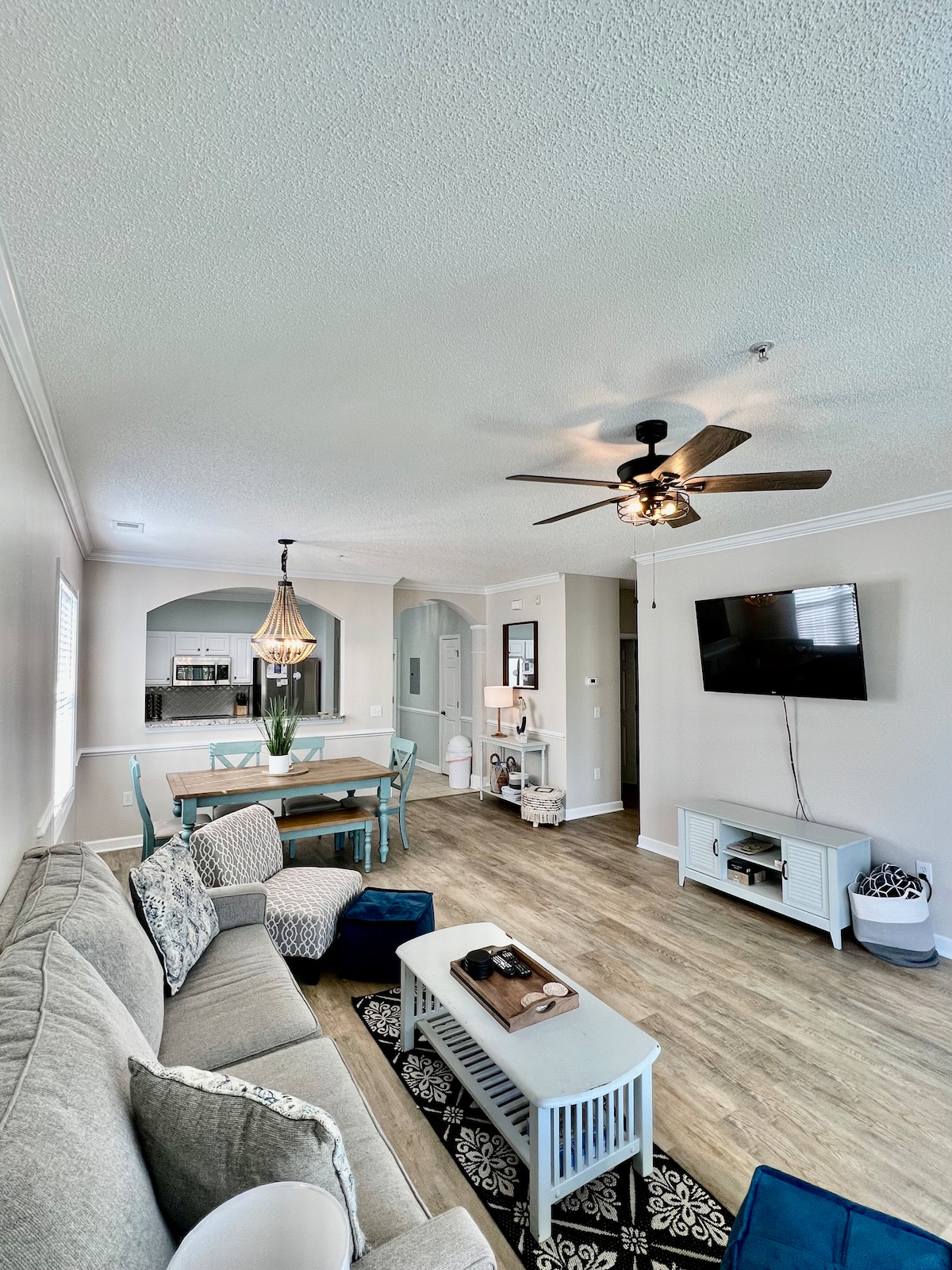 This gorgeous 2Bed/2bath has the perfect location in sought after Barefoot Village right behind Barefoot Landing. The home is walking distance to a small communal pool, a large salt water pool and a marina, a bar/grill and convenient store. It is conveniently located close to shopping and championship golf courses along the Intracoastal Waterway. The beach is a 5 minute drive or there is a shuttle service. Includes: wifi, washer/dryer, chargers, white noise and a spacious desk for remote work.