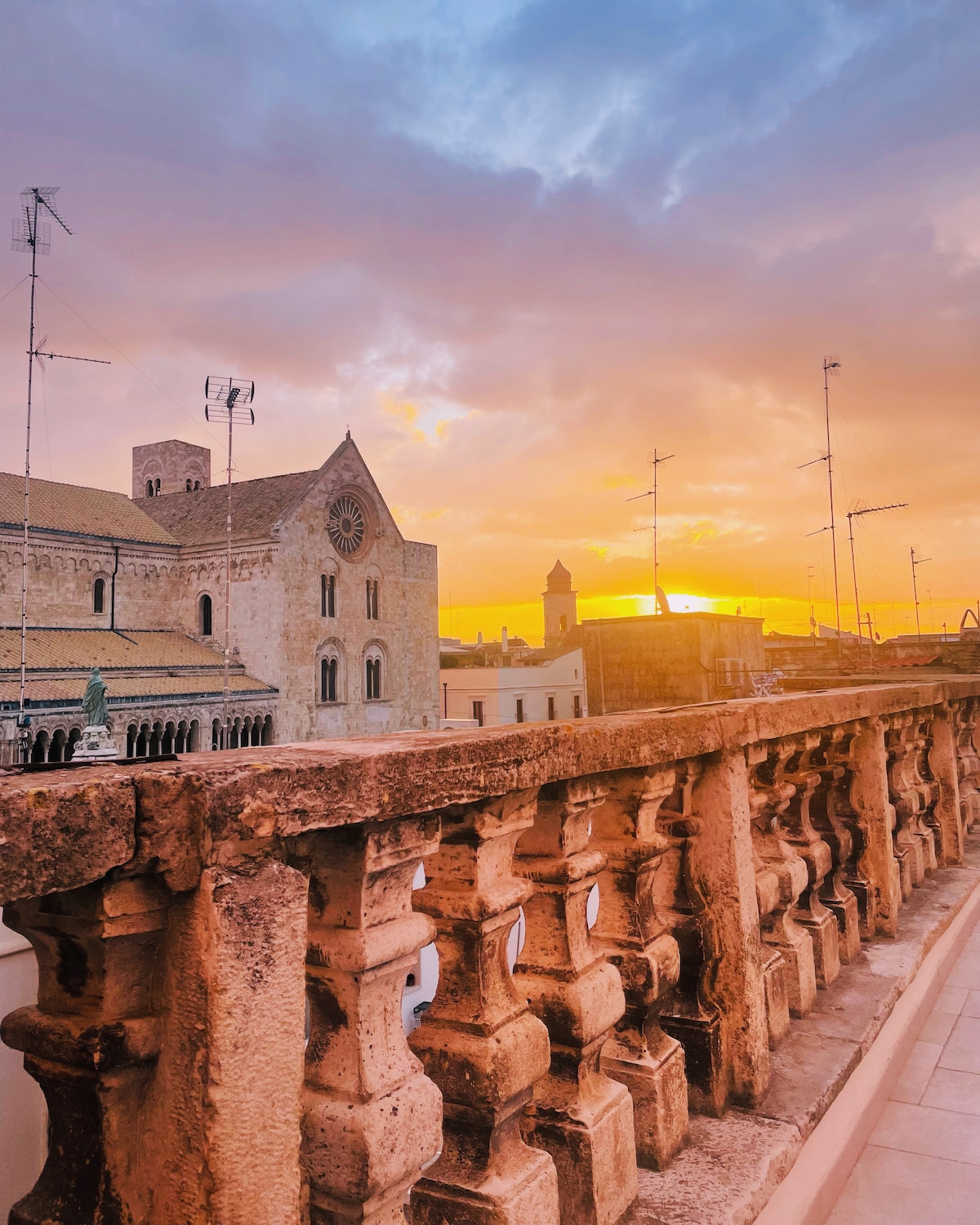 Bed and breakfast moderno e dotato di ogni comfort. Situato nel cuore della città in Piazza Cattedrale, la nostra camera è dotata di bagno privato con ampia doccia, biancheria da bagno, aria condizionata e set cortesia. Su prenotazione, al mattino vi attende una colazione dolce e salata ricca di prodotti della tradizione pugliese. A soli 10 minuti dall'aeroporto di Bari e a pochi passi dalla stazione centrale. La struttura è ubicata in un palazzo storico del 1700, al secondo piano.(No ascensore)