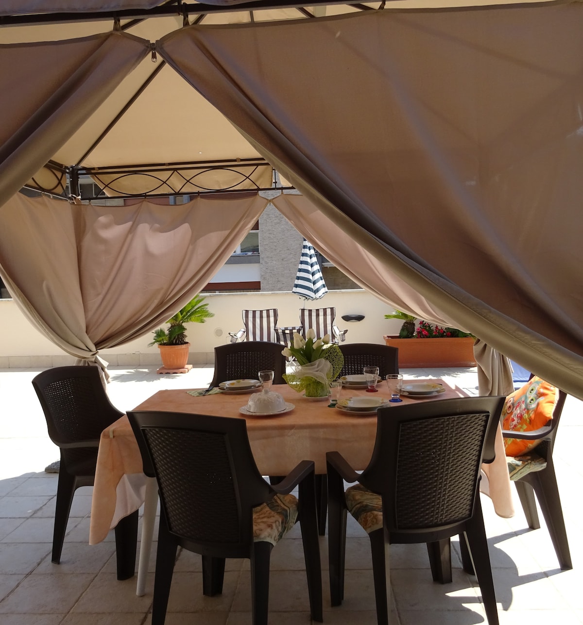 Sky terrace with beautiful seaview and solarium (really in front of the sea, check photo). Barbecue kit on top terrace for beautiful dining in front of the sea. In the bedroom there is a king size bed, you can request the cradle for your children. A small kithen and a private bathroom shower and chromotherapy. 15 mt. from the sea. 400 mt. from the historical center 400 mt. from the famous Rock for Redbull Cliff Diving 1 km from train station Bar, pub, restaurants all really close.