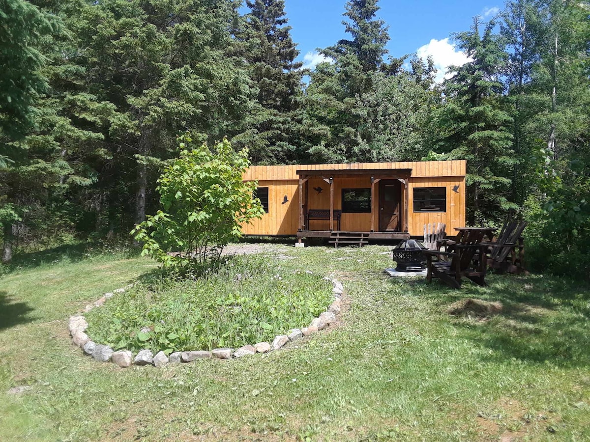 La cabine est située dans une forêt dense de cèdres et vous offre une expérience glamping unique. Capacité 2 personnes. La cuisinette est toute équipée et vous dormirez dans un confortable lit queen avec couette. Toilette au composte dans l'unité et accès au bloc sanitaire pour profiter de salle de bains complètes privées ainsi que pour l'approvisionnement en eau. Stationnement à quelques mètres du sentier d'accès et de la cabine. Nous sommes situés à 20 minutes de Carleton-sur-Mer.