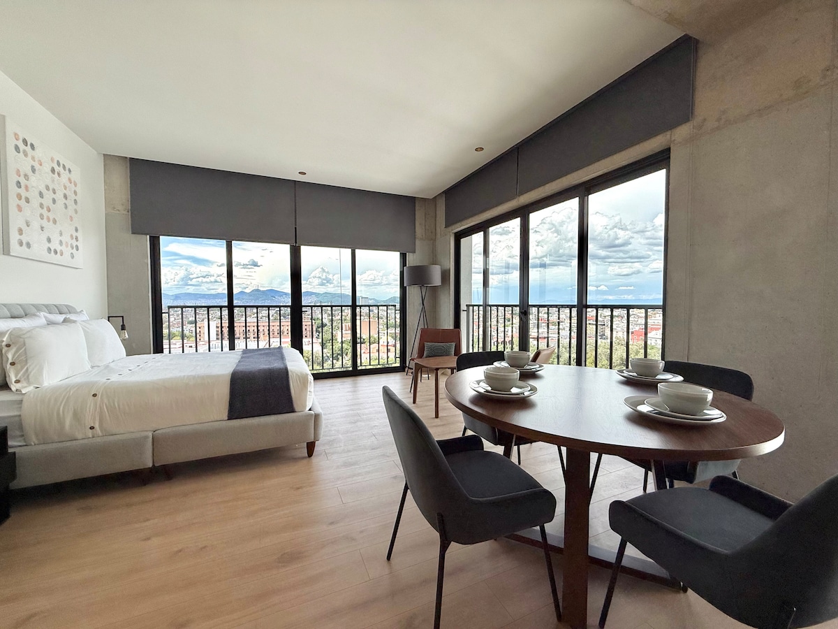 Stay in the heart of Roma Norte, steps from the iconic Fuente de Cibeles, surrounded by top restaurants, cafés, and vibrant nightlife. This stylish studio features a Double-size bed, a cozy sofa, a sleek dining table, a Smart TV, and a dedicated workspace. Enjoy top-notch amenities, including a cool terrace, a business center, a fully equipped gym, and a game room. The perfect spot to experience the best of CDMX!