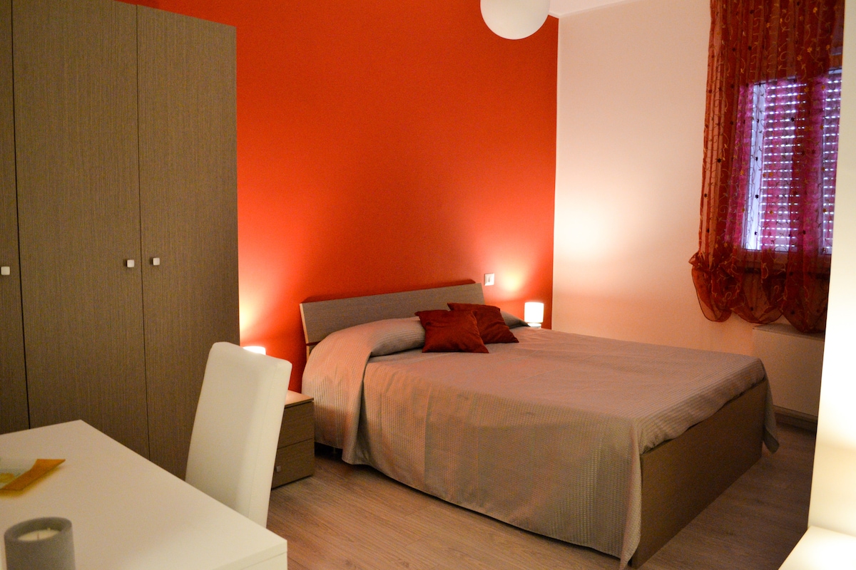 Confortevole ed elegante camera matrimoniale, in stabile moderno, arredata in maniera funzionale per viaggiatori da tutto il mondo. Il bagno offre una cabina doccia, sanitari completi e welcome kit con shampoo, balsamo, bagno doccia e asciugacapelli. La camera da letto, molto accogliente e luminosa, è arredata da una TV e da una piccola area lavoro composta da scrivania e sedia.
