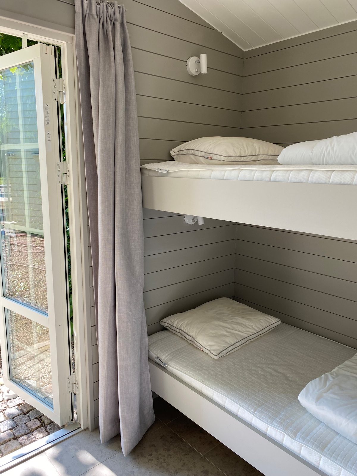 Fristående stuga bestående av allrum med kök, sovrum m 3 bäddar i våningssäng. Badrum m dusch. Stugan är utrustad med porslin till 4 personer. Kylskåp m frysfack. Induktionshäll, ugn, fläkt, mikrovågsugn, kaffebryggare m.m. Egen ingång. Luftvärmepump med möjlighet till kyla. Uteplats av trätrall o utemöbler till 4 personer. Egen parkering i anslutning till stugan. Stugan ligger centralt i Mellbystrand med gångavstånd till fin strand, närbutik, restauranger, stort köpcentrum och motionssling