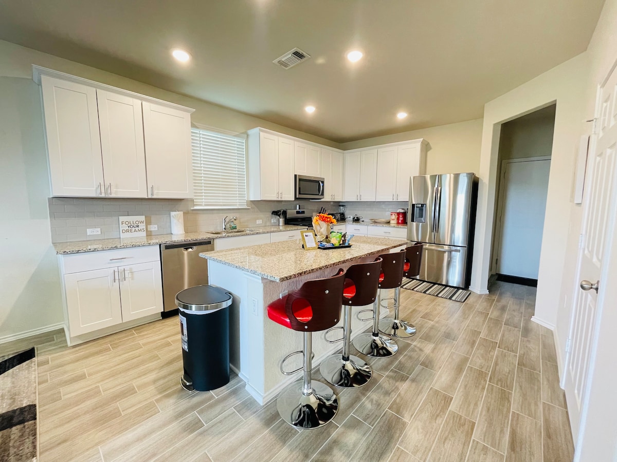This spacious and cozy retreat in newer parts of Del Valle, TX, offers the perfect balance of comfort and access. Enjoy easy access to top attractions, including: + COTA (Circuit of The Americas) – 2.5 miles + East 6th Street – 12 miles + Downtown Austin, Paramount Theatre, TX Capitol –10-13 miles + Austin ATX Airport – 7 miles + Tesla Giga Parking Lots – 5.5-8 miles Relax and recharge here for nice getaway, Austin events or for business trip