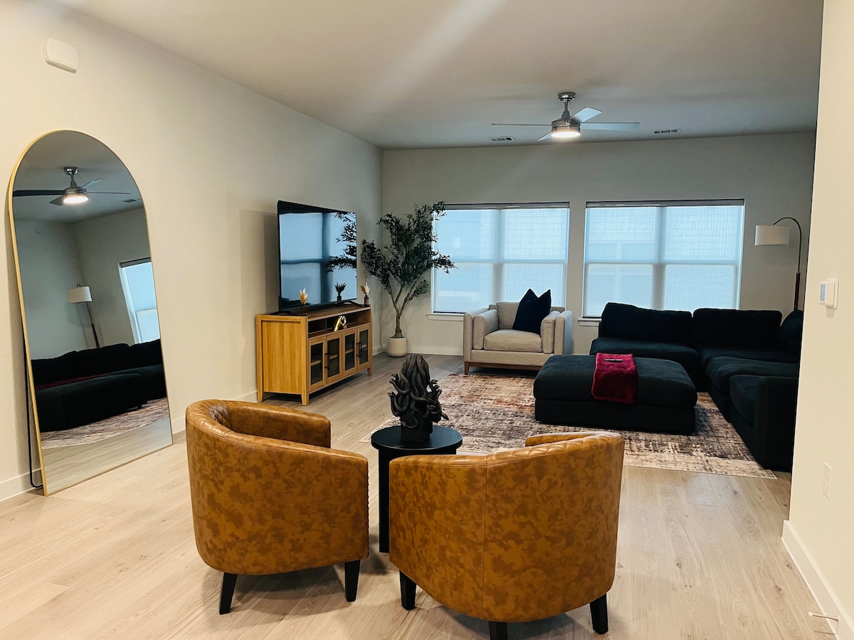 This bright & airy 3 bedroom, 2.5 bathroom home with separate 1 bedroom, 1 bathroom guesthouse offers plenty of room for your family or group. Centrally located, you'll be just blocks from historic downtown Bastrop and only 30 miles from Austin. Whether you prefer to stay local and enjoy the small town life, or venture out for something livelier, this home has something for everyone. A long list of thoughtful amenities both inside and out make this home the perfect place for your next vacation.