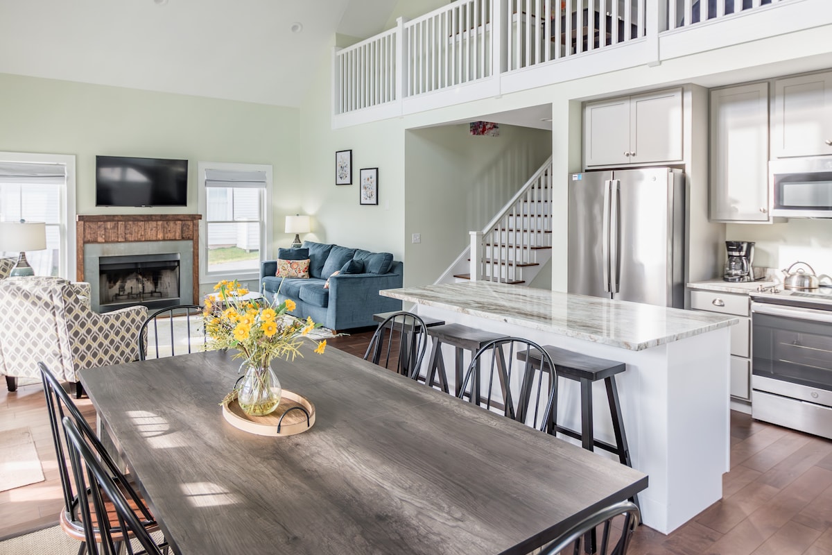 -You can't beat this location just steps to the springs! -Modern + peaceful w/ distant mountain views -Wood burning fireplace, stocked kitchen, wifi -Fire pit, outdoor dining, covered porch, gas grill -Free access to the Old Dairy just down the street w/ community pool, fitness center, indoor hot tub, sauna, & large game room -Walkable to dining across the street -Great for 2 couples or families, OR you can also rent the house next door for your larger group! -10 min to Omni Homestead