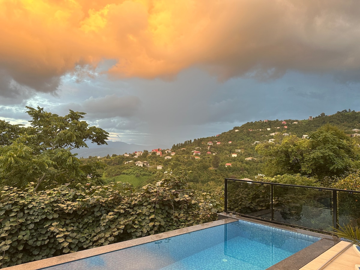 Stylish 228 m² villa in a peaceful, eco-friendly area. Enjoy a private infinity pool with breathtaking sea and mountain views (heating available on request). Two cozy bedrooms with a balcony, modern kitchen, and living room opening onto a sunny terrace. Just 3 km from one of Georgia’s best beaches. Some daytime noise possible due to nearby construction — price reduced accordingly.