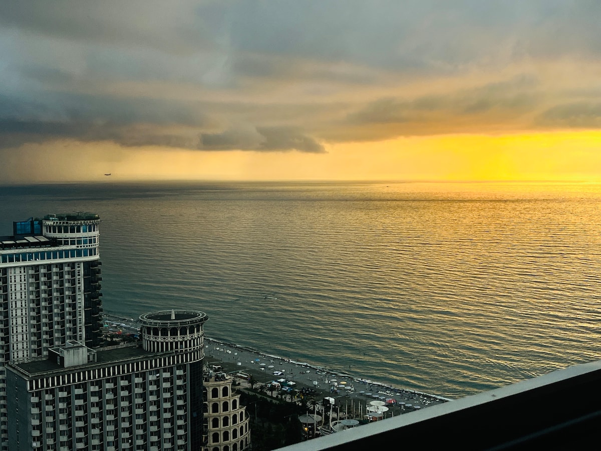 Take on early morning stroll and enjoy the breeze on the empty Black Sea beach. You will just need two minutes from your place to Batumi boulevard. Check the sea from the balcony, you might want to get into your swimsuit. When you get back enjoy cup of coffee on a 44th floor balcony. The apartment is located in the very heart of Batumi, surrounded with wide variety of restaurants, shops, supermarkets and nightclubs. All necessary amenities are provided and host will assist you if you need.