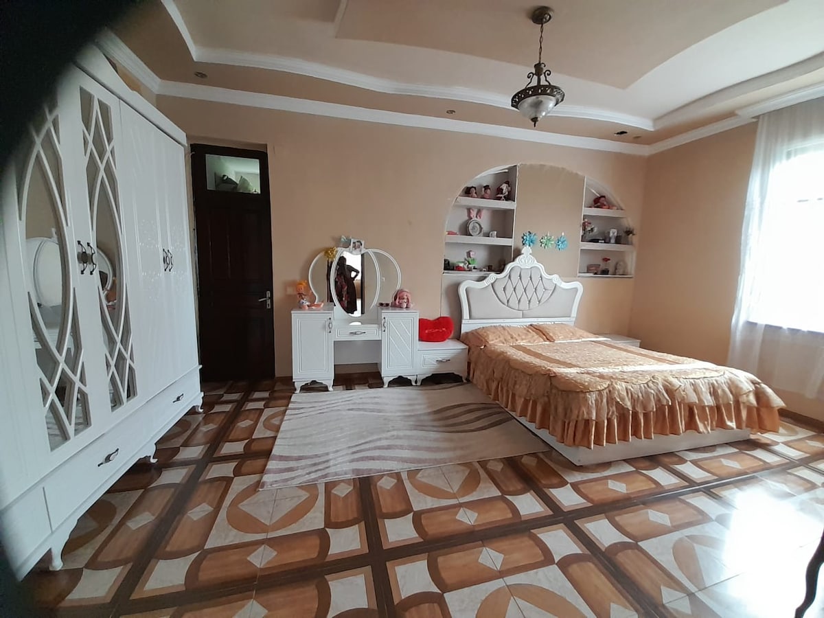 Large, beautiful 2-storey house in Gonio. You can enjoy the silence of nature and the sea air. Free wi-fi, TV. Does the apartment have a kitchenette, as well as a summer kitchen in the yard with all kitchen utensils. Your way to the beach will take no more than 2 minutes on foot. For rent 2-room apartment on the 2nd floor of a house with a veranda overlooking the garden, where you can drink Georgian wine. On the other side of the apartment with a balcony overlooking the mountains