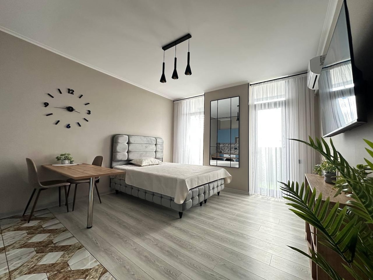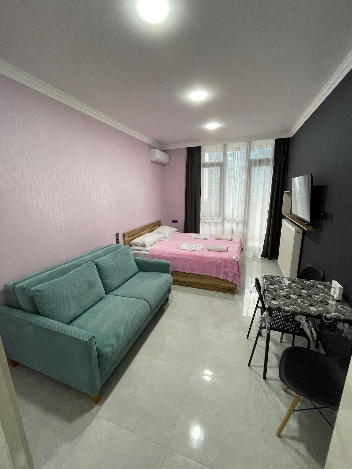 Modern spacious premium studio on the 17th floor with stunning views of the sea, park, mountains and pool. The apartment has everything you need for a comfortable stay: dishwasher, capsule coffee maker, washing machine, toaster, microwave, etc. The apartment is located in the best complex in Batumi with a large territory, swimming pool, sports and playground in the courtyard, restaurants and a shop. Near the shopping center, casino, sea and park. The airport is 5 minutes away by taxi.