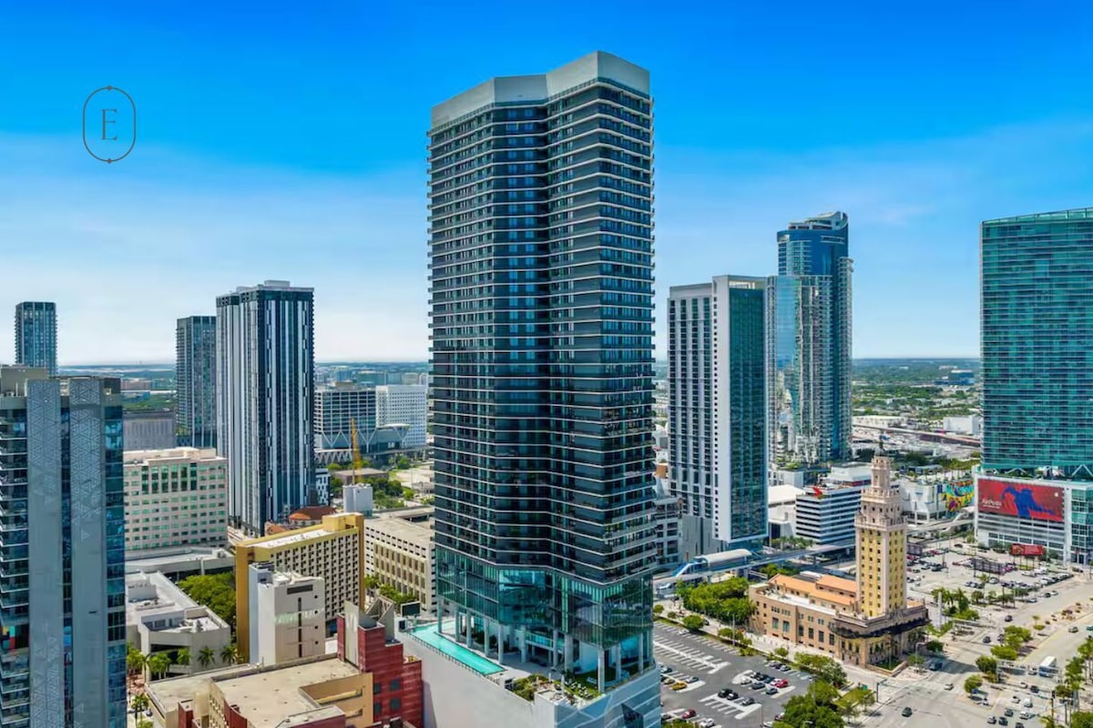 Enjoy breathtaking views from this 35th-floor Downtown Miami apartment, designed for up to 4 guests. Steps from dining, shopping, and daily essentials, with easy access to Brightline and the free Metromover. Minutes from the Kaseya Center, ideal for events like FIFA World Cup 2026, Art Basel, Ultra, Formula 1, and Miami Open. Free parking and premium amenities include a pool, rooftop jacuzzi, gym, sauna, BBQ area, and coworking lounges.