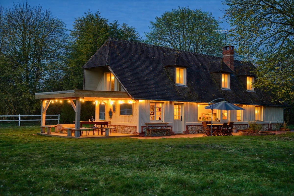 The Gîte des Forières, a charming Norman cottage, offers a spacious refuge and accommodates up to 10 people. Anchored at the gates of Normandy about 130 km from Paris and 80 km from the first beaches, our cottage is located 5 minutes from the famous Château du Champ de Bataille, our house welcomes you for an idyllic stay. Nestled halfway between Paris and Deauville, this haven of peace promises moments of relaxation in the middle of nature, whether one-on-one, with friends or family.