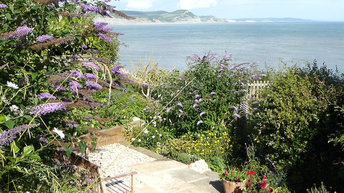 A Hidden Gem on the cliff-top of Lyme Regis with Panoramic Sea Views. A perfect retreat yet only a short 5 minutes stroll to the beach, shops, restaurants.... both house and garden offer a lovely space to chill out, after enjoying all that Lyme has to offer.