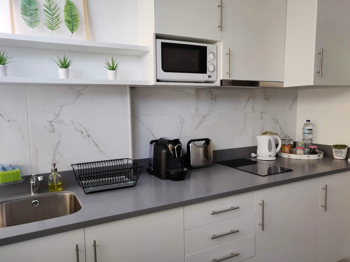Our cozy flat can accommodate up to 2 people with its comfortable double bed. You will enjoy freshness in summer, and warmth in winter thanks to the double AC unit located both in the bedroom and in the living room. The flat is also equipped with high-speed internet, cable TV, a washing machine, a dishwasher, induction plates, an oven, and all the necessary amenities to ensure you will enjoy a perfect stay from day one. Please note that our flat has a strict non-smoking policy.