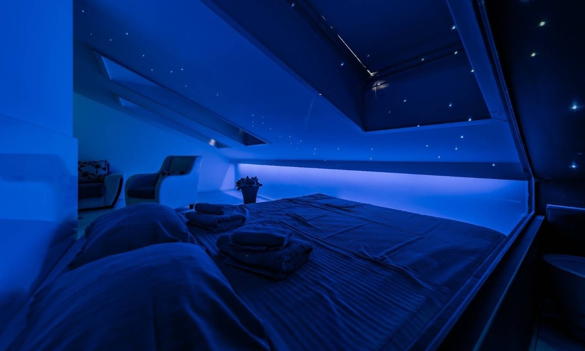 Ovaj jedinstveni prostor ima sopstveni stil. Luksuzno opremljen sa saunom i djakuzijem, koznom garniturom, veoma udobnim i prostranim francuskim krevetom i mermernim podnim oblogama sa podnim grejanjem. Takodje ima i terasu sa pogledom!