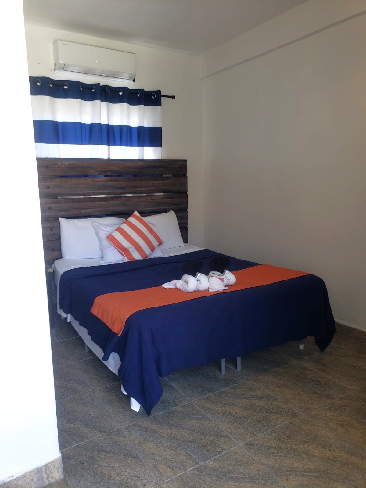 Located in Tropical Paradise Hotel. Locally owned and operated. Small Hotel with friendly Staff on Caye Caulker. Swimming Pool on Property. This room has a view of the Sea and walk out to Swimming Pool, it has AC, TV, Coffee Maker, and Fridge. 2 Double Beds and Private Bath. It is spacious as well. The Room number is just a reference and not the exact room number you will receive, but for sure you will get the same room description you book.