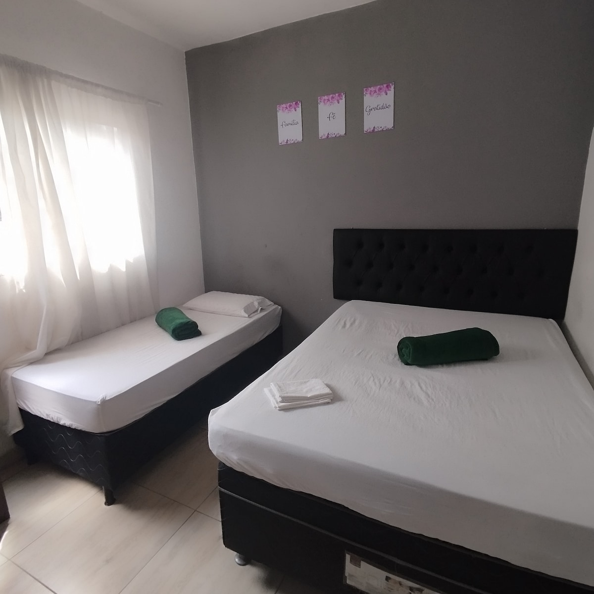 Espaço composto com uma cama de casal e possibilidade de montagem de uma cama de solteiro e um colchão adicional. (Preencha corretamente o número de pessoas a se hospedarem. Valores variam de acordo com o número de hospedes). Facilidade de transporte. Perto do Complexo da Pampulha, vida noturna, transporte público e toda infraestrutura necessária. Espaço confortável, bonito, independente, com boa localização e ambiente agradável.