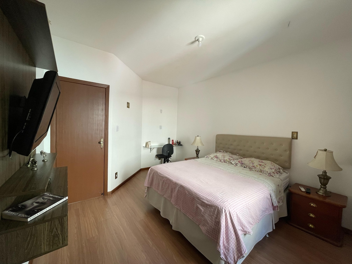 Independent furnished apartment with a full kitchen. The garage entrance is shared with the main house, and access includes a staircase with 12 steps. Quiet and safe, with intercom, WiFi, and Smart TV. Close to supermarkets, bakeries, restaurants, Santa Teresa Metro, hospitals, and clinics. Near Av. Mem de Sá, Av. Andradas, Av. Contorno, and Shopping Boulevard. Just 15 minutes from downtown Belo Horizonte and the Floresta and Santa Teresa neighborhoods.
