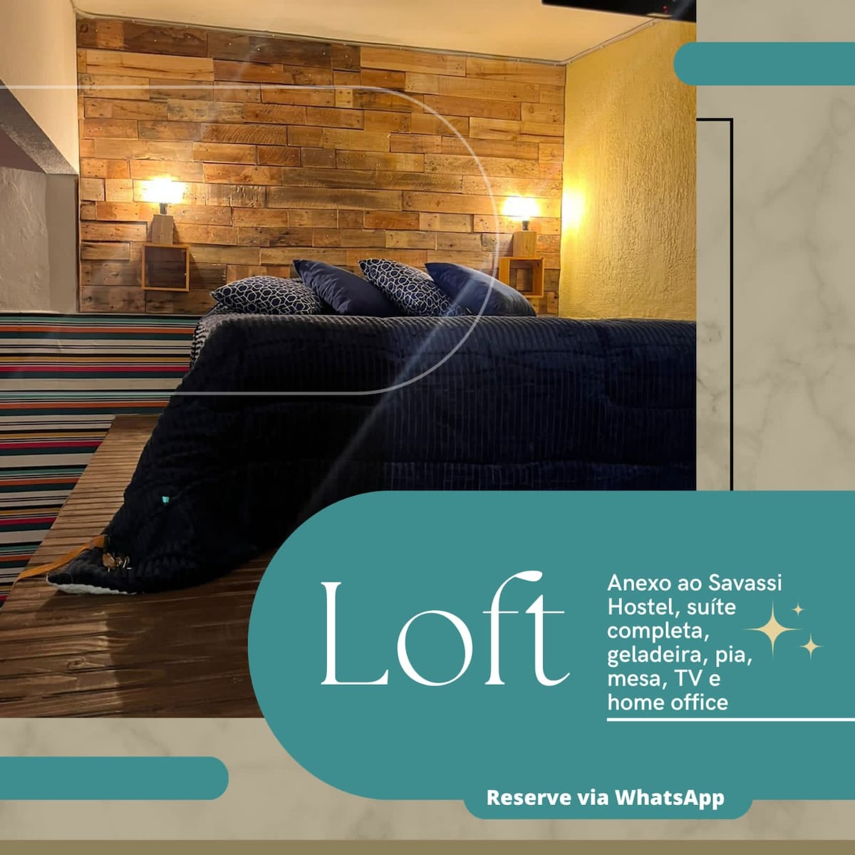 Loft com sala ,cozinha ,banheiro independentes + ar-condicionado ,refrigerador,cômoda cama Queen , cozinha gourmet externa , bancada ,cooktop Airfryer ,microondas… ambiente com 1 sofá , poltrona de linho,mesa para notebook … oferecemos serviço de lavanderia gratuito . Fornecemos toalhas grandes, lençóis, edredons , cobertor reserva , sabonetes ,shampoo ,limpeza e manutenção para conforto dos nossos hóspedes