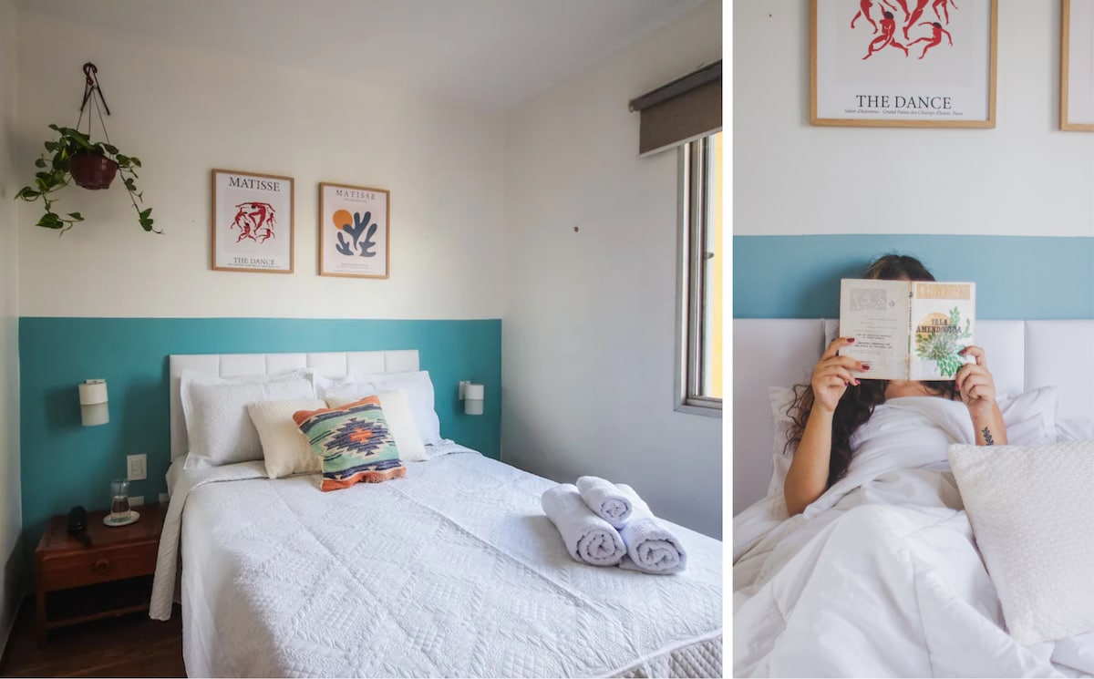 Não há região melhor para desfrutar de Belo Horizonte que a Savassi! Padarias incríveis, cafés, museus, livrarias, bares, lojas e toda movimentação turística da cidade ao nosso redor! O apartamento é acolhedor, possui ar condicionado, piscina no prédio, porteiro 24h e toques especiais! Acabamos de redecorá-lo pensando exclusivamente em recebê-los! Temos um quarto com cama de casal e um sofá cama casal confortável na sala que acomodam mais duas pessoas *O banheiro é dentro do quarto de casal