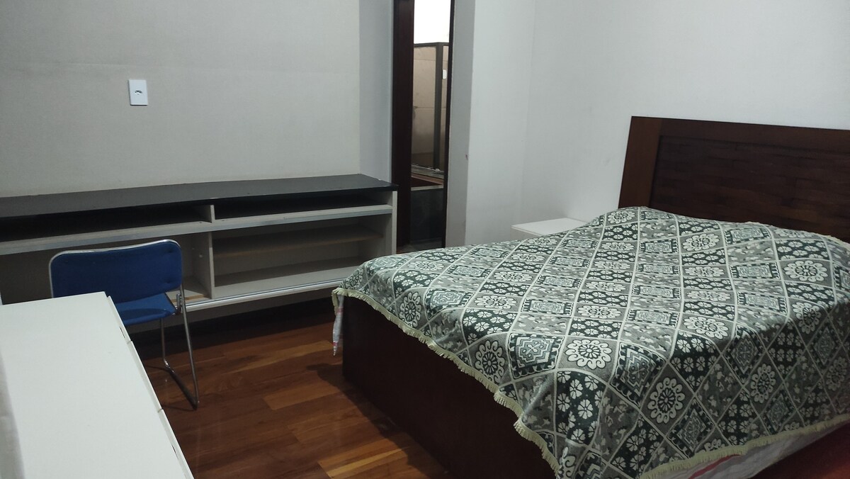 Esqueça de suas preocupações neste lugar espaçoso e tranquilo. Localizado no bairro Santa Amélia, fácil acesso a Av Portugal, Av Guarapari, lagoa da Pampulha e Mineirão, ótima localização! Espaço extra na cobertura, com churrasqueira e Rede caso queira tomar um ar e espairecer. Tenho um Doguinho super brincalhão e dócil, ele adora fazer amizades. 🐶 Apt no Segundo andar(2 lances de escadas) Quarto Composto por uma cama de casal e um colchão solteiro.