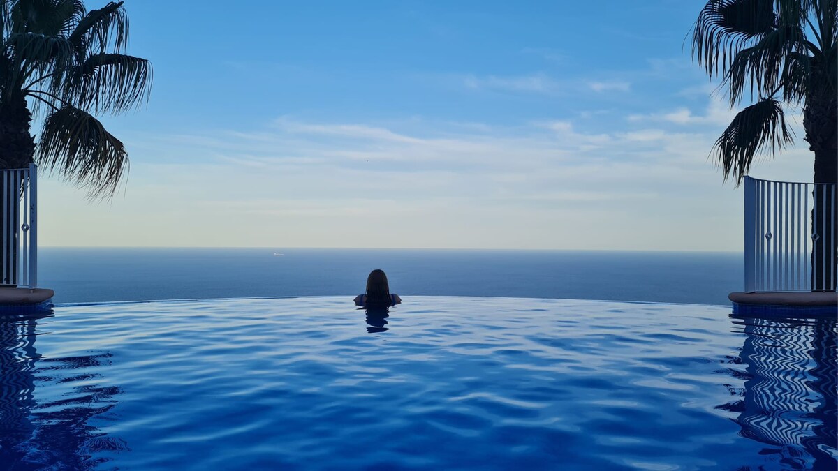 Appartement à Cumbre del sol vue mer de 180°. Entre Valence et Alicante, 4-6 personnes full équipé: 2 chambres, cuisine, salle de séjour, 1 salle de bain et terrasse vue mer. 2 piscines + pataugeoire au pied de l’appartement. Climatisation, lave-linge, lave-vaisselle, 2 tv, wifi, vaisselle, draps, sèche cheveux.. Plages, restaurants, bars, balades en montagne, terrains de tennis et padle, sports nautics.. A 5 min plage Cala Moraig, 10 min plage Javea et Moraira 20 min de Calpe et 30 min Benidorm