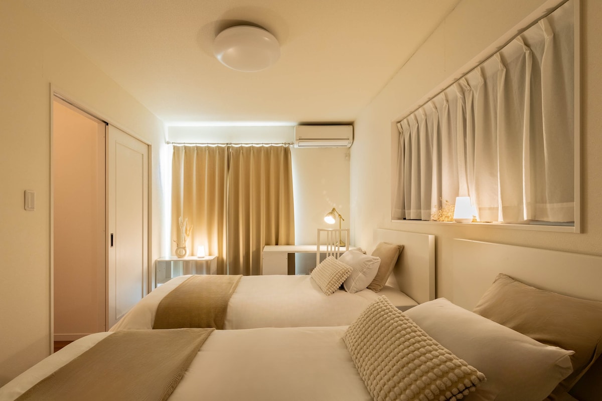 This stylish, fully renovated 4-story, 5-bedroom home (150㎡) was designed by a renowned interior coordinator. Just a 5-minute walk from Bentencho Station—serviced by both JR and Osaka Metro lines—it offers easy access to USJ, Namba, Kyoto, Nara and more. Located on a wide, sunny street, the house features 2 bathrooms, 3 toilets and 3washbasins, 5 private bedrooms. With 4 semi-double beds (for single use) and 4 double beds, it’s perfect for families and groups to relax in comfort and privacy.