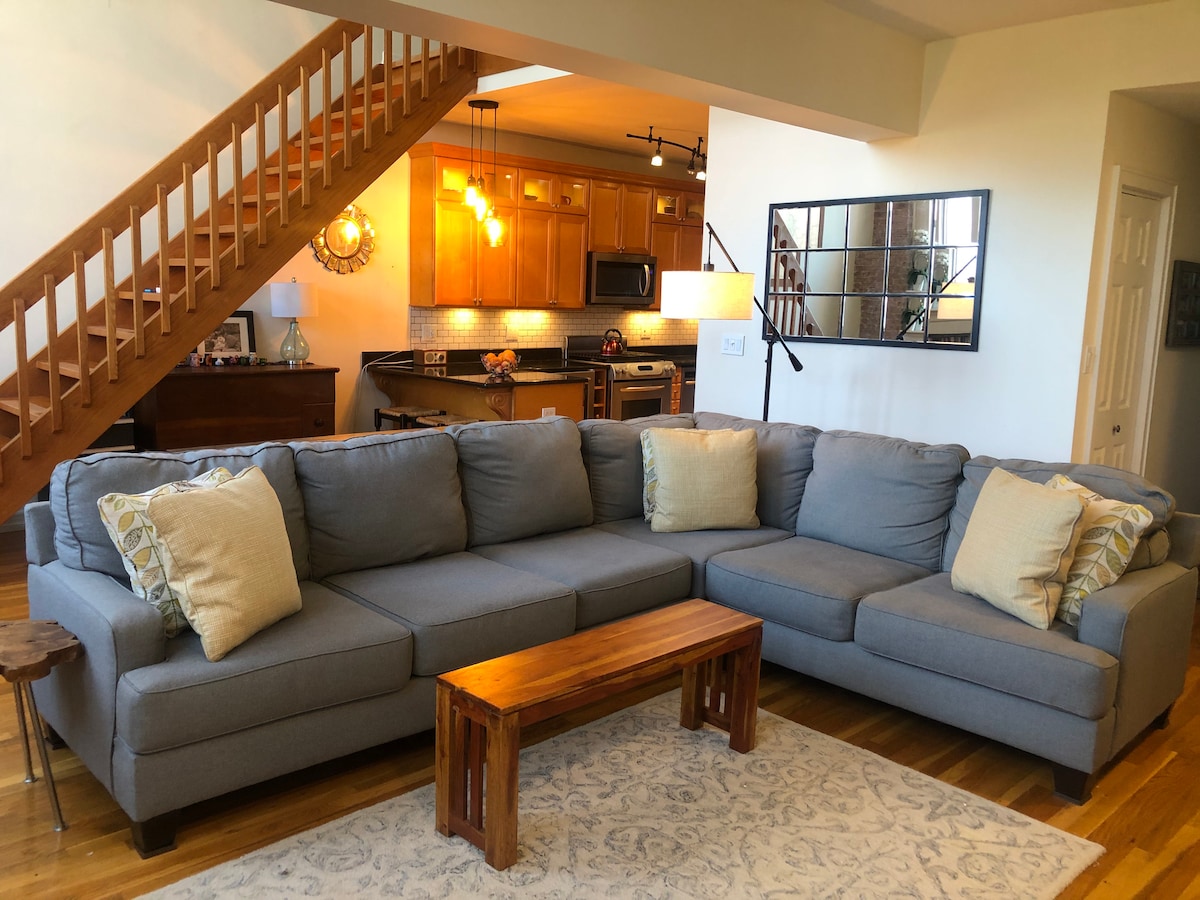Our sunny, chic townhome in historic building in Montclair is steps from direct train to Secaucus and World Cup stadium. No car needed! Train also takes you to Penn Station NYC in 38 minutes. Or stay in Montclair and walk to restaurants, coffee shops, bars, theaters, art galleries Whole Foods etc. Relax in comfort after the games or on peaceful, tree-shaded deck.