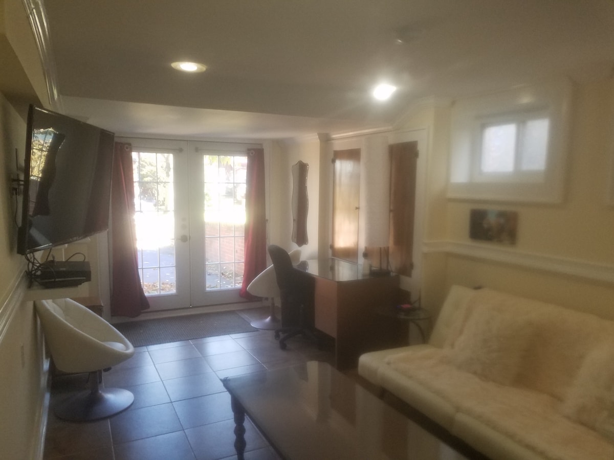 A cozy, smoke-free, and Pet Free retreat perfect for remote workers or event travelers. this first-floor space in a charming multi-family home has all the necessities. Enjoy your own patio/parking, fast WIFI, toiletries and views on NYC when you go for a walk. This budget-friendly stay is simple, comfortable, and hassle-free and the perfect chilled alternative to the city. Not a listing for smokers, large celebrations or excessive cooking