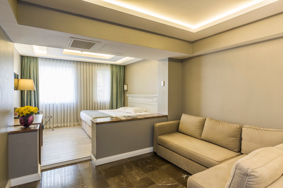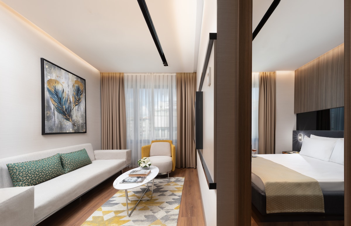 Stay in the heart of Beşiktaş, one of Istanbul’s most central neighborhoods. This hotel room is located in Cheya Beşiktaş Hotel & Suites, within walking distance to ferry, metro and bus stops, offering easy access to Taksim, the Bosphorus and historic areas. The room features fast Wi-Fi, daily housekeeping, air-conditioning and a comfortable bed. Cafés, restaurants and the waterfront are nearby. Buffet breakfast and airport transfer are available upon request.