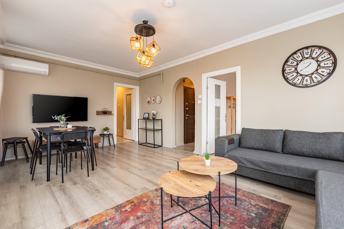 Only in a short walking distance you can reach lively, energetic center of the city; Public Transportation Traditional Turkish & International cuisine Restaurants Markets, Historic Fish Market, Delicatessen, Pharmacy Museums Art Galleries, Theaters, Bookstores Pubs, Bars, Live concert halls Parks It was a pleasure to create some of the hand-made furnitures and decorating the flat with warm colors. You will enjoy the spacious ambience and feel cozy here.