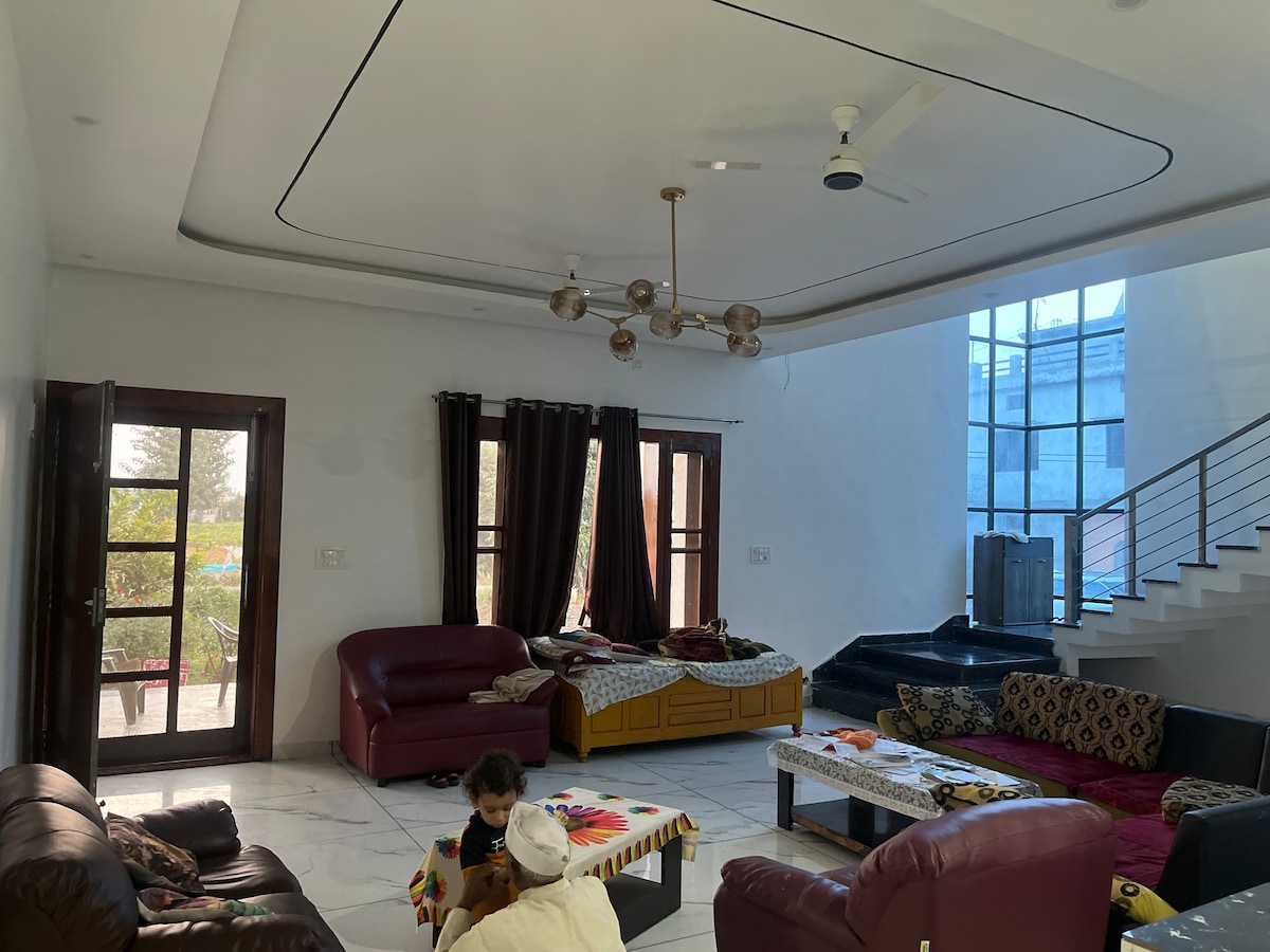 -Unplug, unwind, and reconnect in Kumaon’s wilderness. This cozy 2-bedroom villa, just 10 mins from Bhimtal, is perfect for families, friends, or elderly guests. Surrounded by greenery, enjoy slow mornings on the sunlit patio or a private pool from your ensuite. -Explore lakes, spiritual sites, and hill adventures, or relax with books, games, or bonfires. -This villa comes fully serviced with staff, and a private chef can be arranged at an additional charge for homely meals.