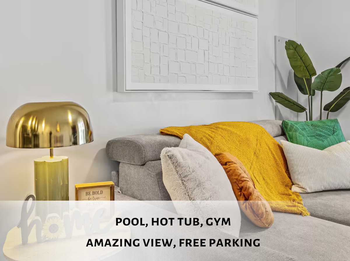 舒适的2卧室,壮丽景观,热水浴缸和泳池,步行即可抵达市中心