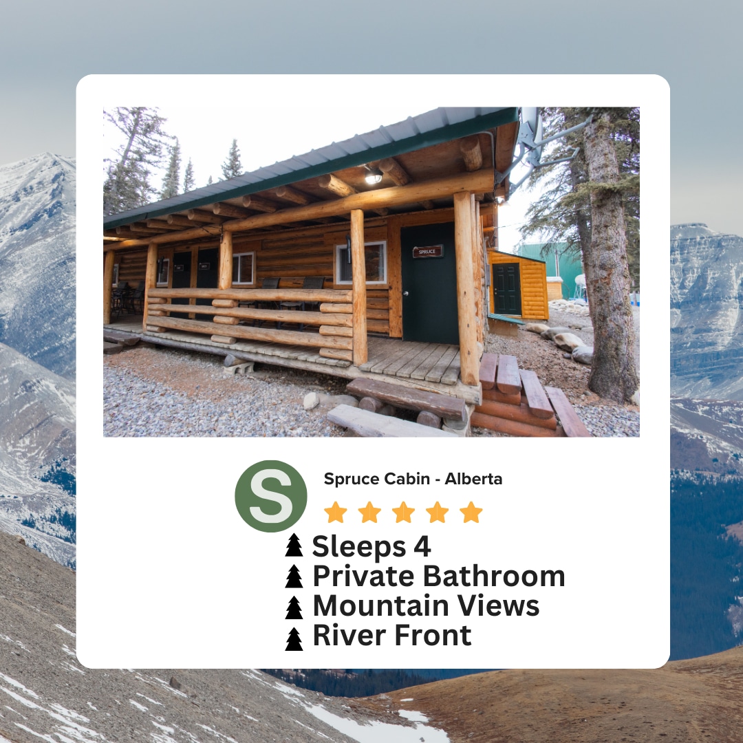 Trappers Hill, a unique off-grid glamping adventure amidst the breathtaking landscape of the Canadian Rocky Mountains overlooking, the Ghost River. Located 1.5 hours from Canmore. Glamping cabins include king bed (bedding not included), fire pit, mountain view, picnic table & more. Enjoy propane heated showers, wood burning sauna and cold plunge. 4 outhouses and non-potable water available. Wifi available at Camp Store where you can purchase camping essentials. *Bedding not included*