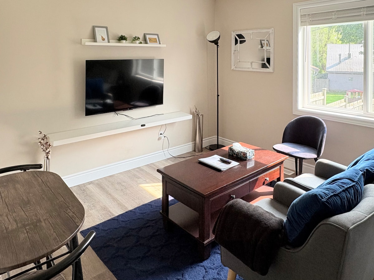 Enjoy your stay at this centrally located, beautifully renovated apartment! We’ve gone above and beyond to create an exceptional living space that prioritizes your comfort, wellness, and productivity. Start your day with our yoga equipment, have a productive workday at our dedicated workspace, cook up your favourite meals in our well-equipped kitchen, and wind down with our luxurious living room & bathroom- complete with heated floors!