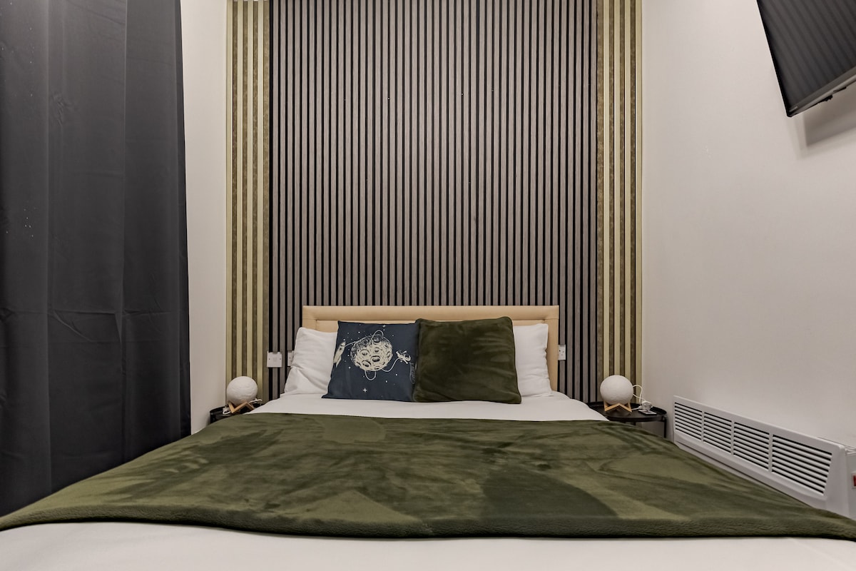 Modern en suite in Birmingham's vibrant center with smart door access. Enjoy contactless check-in, free WiFi, and luxury amenities. Minutes walking from major attractions, shopping, and dining. Exclusive 20% discount at 24/7 Shaorma Hub next door. Perfect for both business and leisure stays. Save 15% booking direct via aparthotel club. Professional cleaning between stays ensures your comfort and safety.