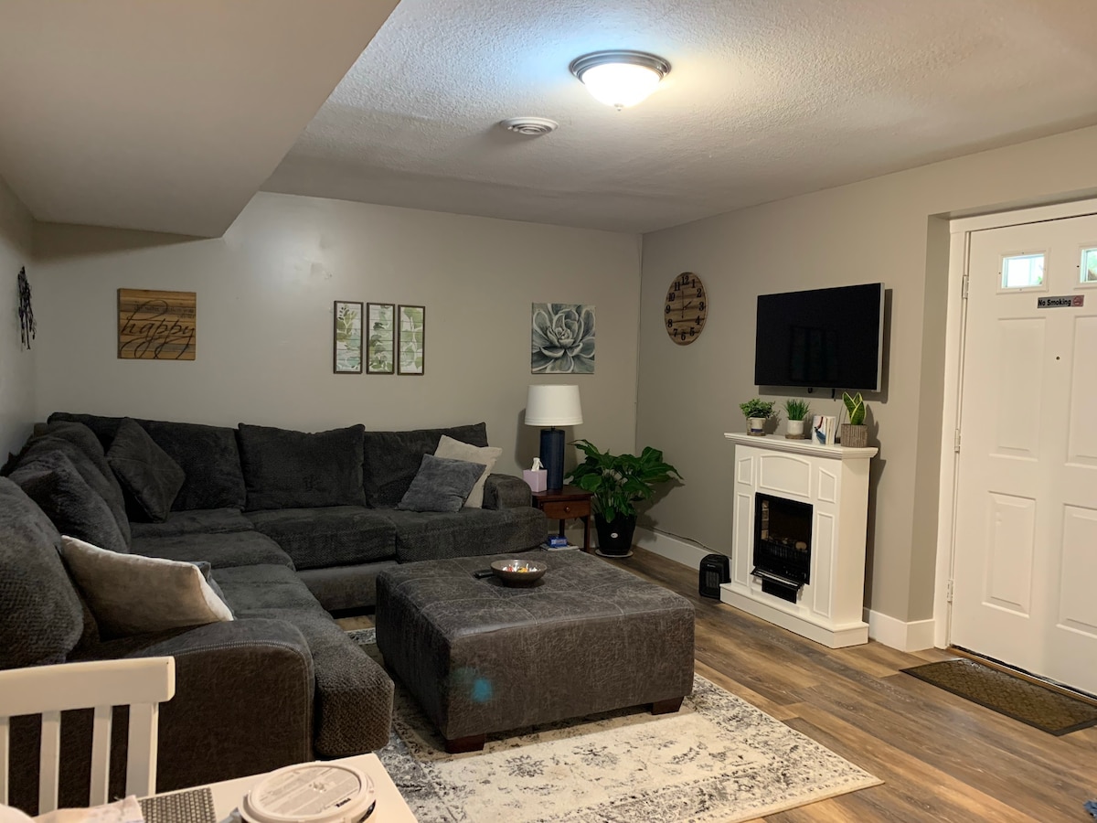 This 1 bedroom carriage house is custom built, with tall knotty pine ceilings and features a spacious open concept. There is a queen size bed and plenty of closet space. A full kitchen, including refrigerator, stove, coffee and microwave and all the necessities to prepare a meal. The 3 piece bath includes, tiled shower, makeup mirror, and hair dryer. A sectional couch for relaxing, or watching tv. You’ll have a separate parking space, and a bistro set to enjoy on the carriage house porch.