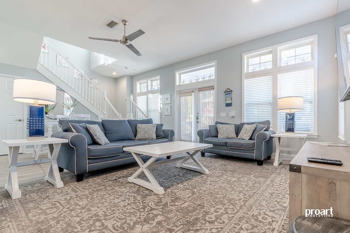 *now dog friendly *golf cart included *laidback coastal charm *Ample living space, almost 2300 sq ft *safe and sought after neighborhood *back patio faces community pool *back patio with private grill and fire pit *community pool *carport, driveway parking and parking pad, room for 3 vehicles (overflow parking at pool) *under 8 minute walk to beach, restaurants and shopping *fully stocked kitchen *no week minimum *low admin fee