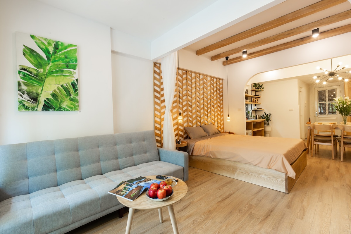 Welcome to Ô MAI Homestay, where modern elegance meets timeless charm in the heart of Hanoi. Our newly renovated Japandi-style apartment on the 5th floor of a historic building (no elevator) offers a fresh, chilled, and cozy ambiance for up to 4 guests. Only a few minutes walk from Hoan Kiem Lake, our homestay invites you to experience the authenticity of a local building—clean, secure, and guarded 24/7. NO ELEVATOR! No problem! Assistance with your luggage is just a request away.