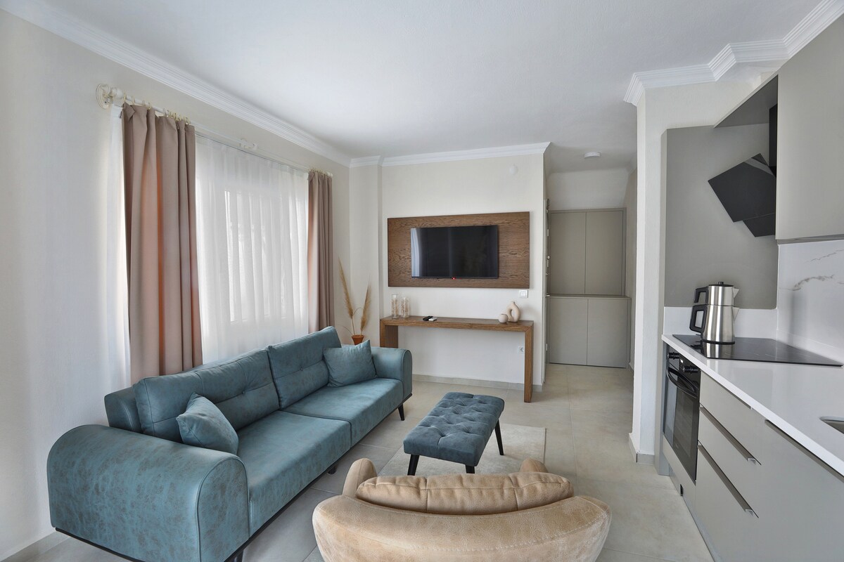 Тюркбюкю - тихое и уютное место, созданное для тех,кто любит спокойный отдых. Апартаменты находятся в 100м от пляжа и центраТюркбюкю с традиционными ресторанами, магазинами и бутиками. К услугам гостей бесплатный wi-fi и бесплатная парковка. В числе удобств телевизор с плоским экраном, кондиционер, холодильник, стиральная машина,посудомоечная машина. Расстояние до аэропорта Milas-Bodrum составляет 45 км. За дополнительную плату организуется трансфер от/до аэропорта.