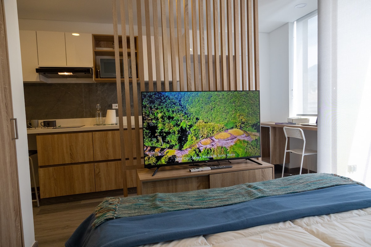Piso 22, vista espectacular, amaneceres&atardeceres. Confortable apartamento nuevo tipo loft. Superhost. Ubicado Centro Internacional e Histórico Bogotá. Ideal estadías largas, trabajo, nómadas digitales, descanso, turismo, placer. Internet 500 MB alta velocidad 5G, 2 Ultra wifi. Smart Tv. Netflix. YouTube. 2 escritorios de trabajo. Supermercado muy cerca. A 20 minutos del aeropuerto El Dorado. Piso 25: Piscina climatizada, jacuzzi, Gym,sauna. Cafetera, café fresco todos los días ! BBQ Piso 18