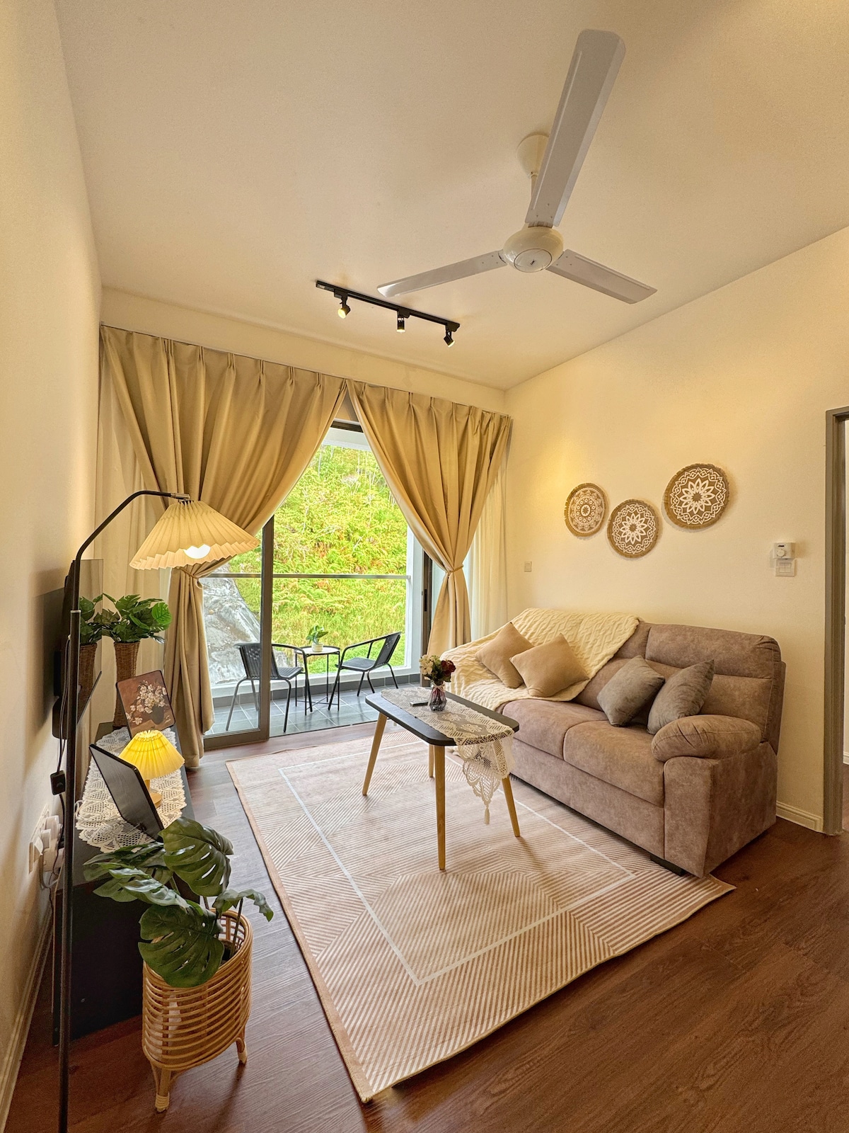 Welcome to MyUrbanGetaway, our 2nd & boldest listing yet. Located smack center in bustling Tanah Rata, we assure you the best highland experience this little town of ours has to offer. 5 floors up in the Cameron Fair mall complex, housing the Avillion Hotel as well as eateries like Old Town White Coffee and the delightful Naux Pastry Cafe, treat yourself to a posh yet comfy retreat with our newly renovated and fully stocked 2 bedroom unit, perfect for plant-lovers and boho-chic enthusiasts.